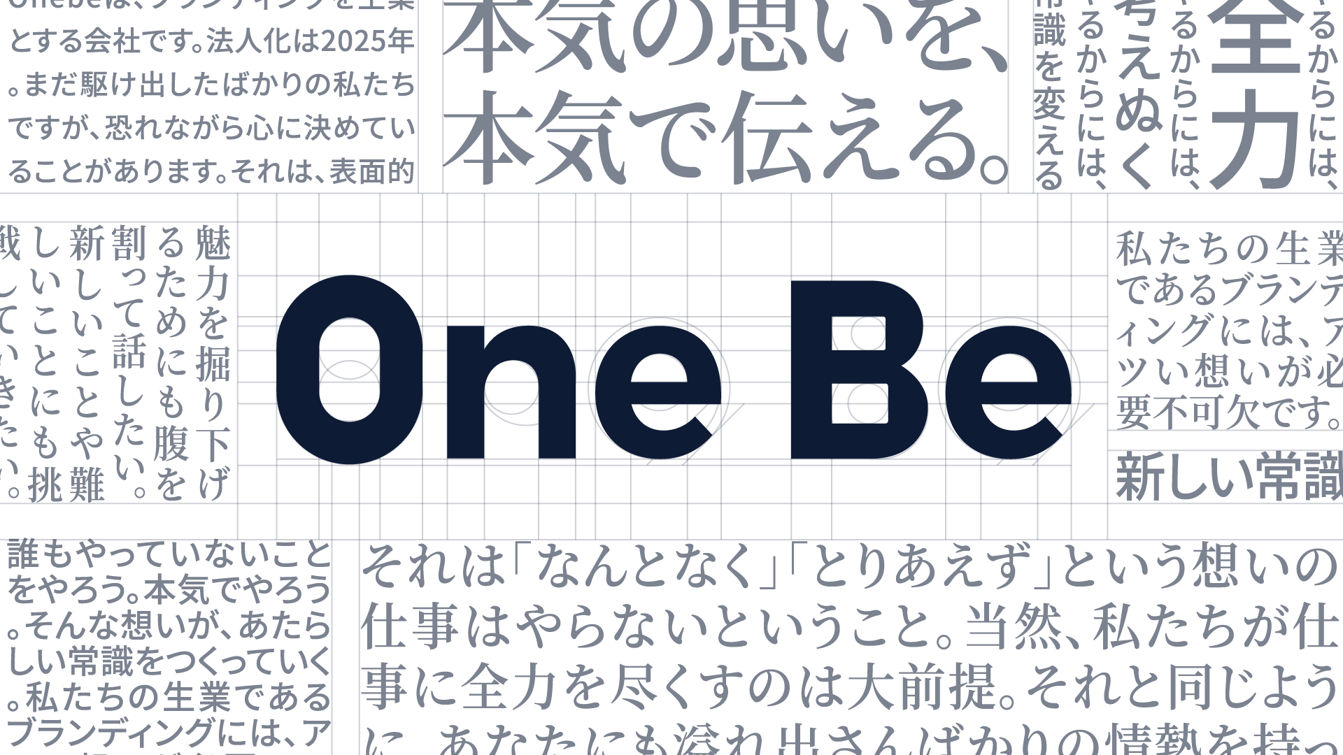 OneBeは、「本気の想いを、本気で伝える。」というミッションのもと、企業の想いや価値を言語化し、ブランドとして社会に伝えていくブランディング会社です。